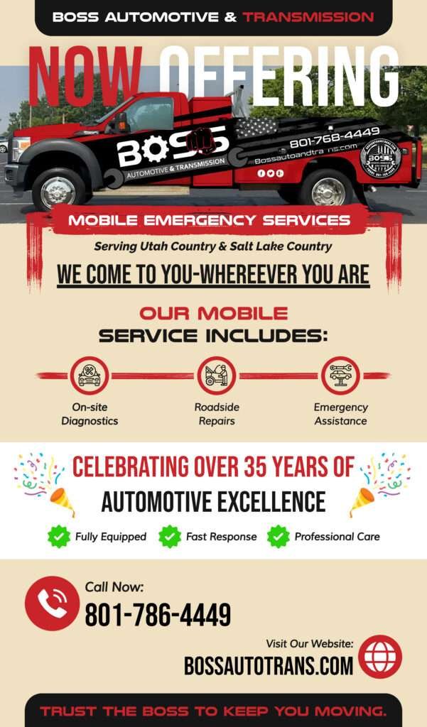 Boss Automotive & Transmission is proud to announce the launch of our Mobile Emergency Service Unit, bringing expert diagnostics, repairs, and roadside assistance directly to you.